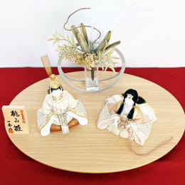 | 木目の楕円形お飾り台に、アルミの円がスタイリッシュな花器を乗せてシンプルにまとめました。 造花はセットでついてきますが、生花を入れても可愛いです。 お人形のお衣装には甲州印伝革を使用しております。 魔除けの菱形の中に不老長寿の意味をもつ菊を入れた菱菊という縁起の良い柄となっております。 ワントーンでまとめた可愛い親王飾りです。 ●こちらの商品の特典(サービス品) ・サービス品@毛氈(もうせん) ・サービス品Aお手入れセット ・サービス品Bお節句説明書 ・サービス品Cお子様のお名前入り立札 ・サービス品Dお被布(お子様に着せて頂くと可愛いです) 国内送料無料です (海外への送料につきましては有料になります) |
