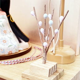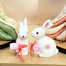 | 小さな収納箱の親王飾りです。 奥行き15pのコンパクトサイズで、お飾りになる場所を選びません。 保管時もこれだけ小さな箱ですと、とても扱いやすいです。 小さくても存在感が出るように、お衣装には上質な正絹川島織物を使用し、お屏風は銀箔の上から桃色の絹をかけた品よく華やかなものを合わせました。 正絹ならではの繊細な発色と光沢を楽しめる素敵なお衣装です。 お雪洞はコードレス(電池式)で灯りが点きます。 うさぎさんのお飾りには、昔うさぎの赤い目が病気を治す力があるといわれたことから、お子様が病気になりませんようにという意味がございます。 お人形が座る木目円台には桜の柄が埋め込まれております。 見えないところまで抜かりなく可愛いです。 ●こちらの商品の特典(サービス品) ・サービス品@毛氈(もうせん) ・サービス品Aお手入れセット ・サービス品Bお節句説明書 ・サービス品Cお子様のお名前入り立札 ・サービス品Dお被布(お子様に着せて頂くと可愛いです) ・国内送料無料です(海外への送料につきましては有料になります) |