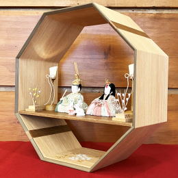 | 八角形のお飾り台が目を引く親王飾りです。 八角形は幸運を引き寄せる形といわれており、大変縁起の良い形です。 台の下部には、手描きで桜の蒔絵を入れております。 お人形は正絹衣装を使用しております。富貴の象徴とされる牡丹の柄が入っております。 優しい色使いがマイルドなお顔立ちに良く合います。 お雪洞はコードレスで灯りが点きます。明かりを点けると天井部分に光りが反射して綺麗です。 中央にちょこんと座ったうさぎさんには、病気になりませんようにという願いが込められております。(昔、うさぎの赤い目には病気を治す力があるとされており、そのことから、お子様が病気になりませんようにとういう願掛けになりました。) 奥行き15pのお飾りですので、ちょっとした棚にも飾れます。 省スペースで飾れて存在感もあるお飾りです。 ●こちらの商品の特典(サービス品) ・サービス品@毛氈(もうせん) ・サービス品Aお手入れセット ・サービス品Bお節句説明書 ・サービス品Cお子様のお名前入り立札 ・サービス品Dお被布(お子様に着せて頂くと可愛いです) 国内送料無料です (海外への送料につきましては有料になります) |