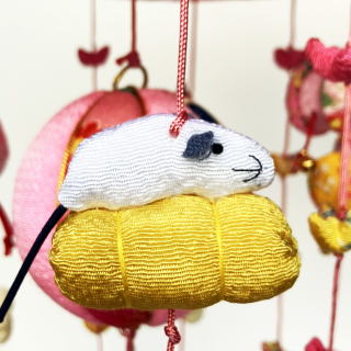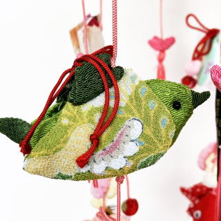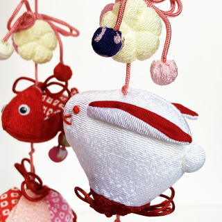 この年に生まれた女の子の幸多かれと願って、一針一針縫いあげたぬいぐるみの飾り物です。江戸時代より受け継がれる、縁起が良い飾り物です。