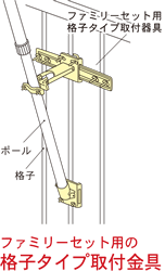 上記の格子タイプがセットされています。格子に合わない場合には、別途の取付金具がございます。詳しくは店頭スタッフにお聞きください