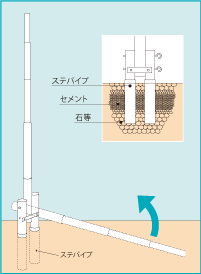 地中に埋め込んだステパイプは、パイルを抜き取りキャップをかぶせて、平地として利用でき、再度利用する時も大変便利です。