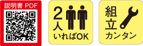 スルスル装置は補助ポールの滑車を利用して、上から1本ずつ吊り上げる方法なので、狭い場所でも設置でき、設置時・収納時に大人2人で楽に行えます。安全装置付きなので作業も安心。