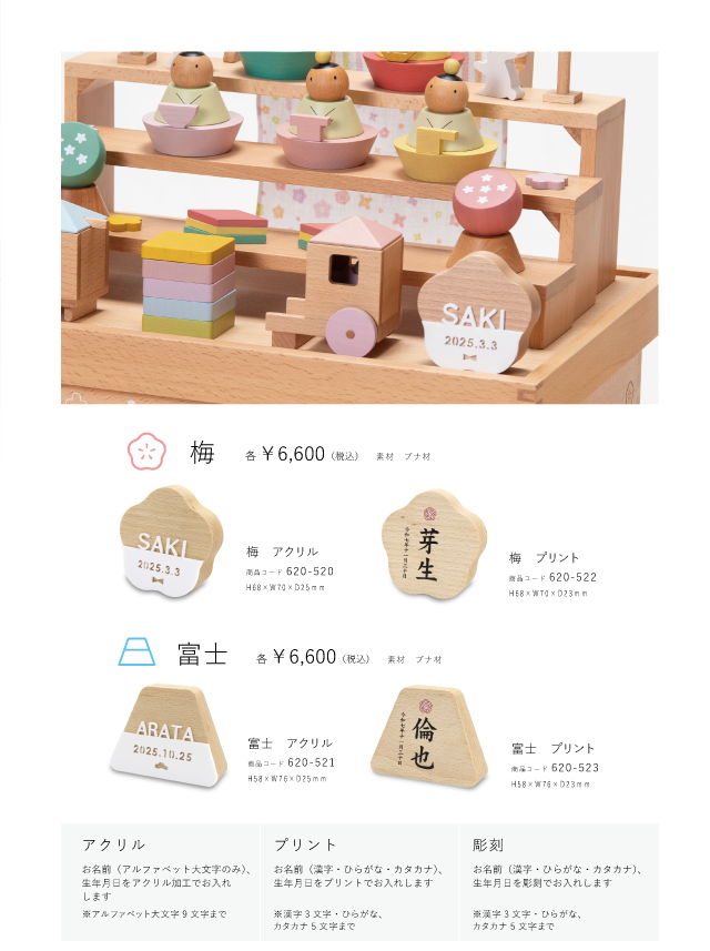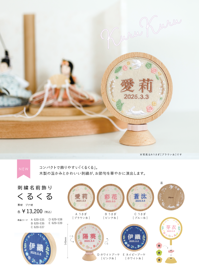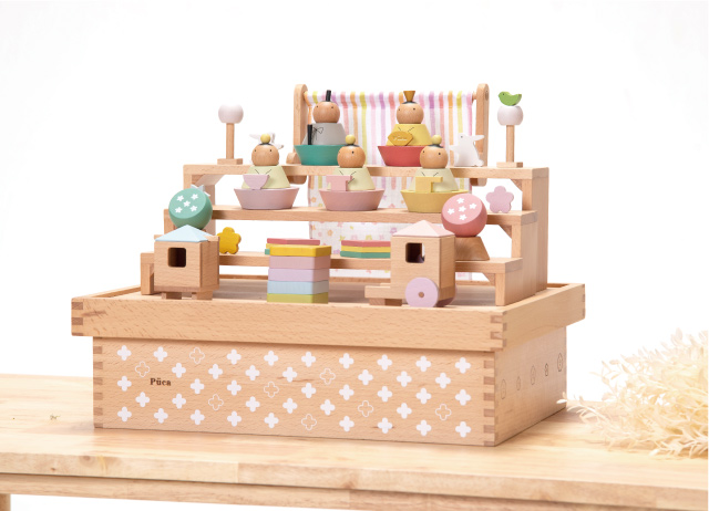 木製の温かみとかわいい刺繍が、お節句を華やかに演出します。 |