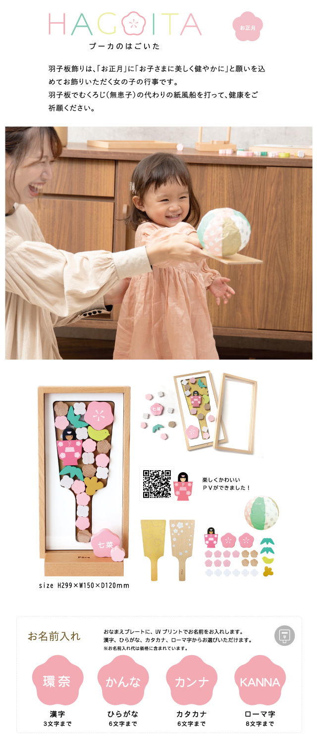 羽子板飾りは、「初正月」に「お子さまに美しく健やかに」と願いを込めて