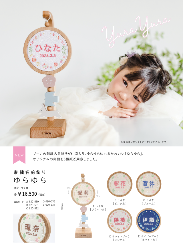 プーカの刺繍名前飾りが仲間入り。ゆらゆらゆれるかわいい「ゆらゆら」。
