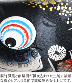 桐竹鳳凰麒麟柄のジャガード織生地に