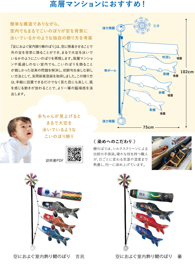 空におよぐ室内飾り鯉のぼり 吉兆 |