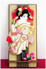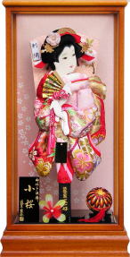 ![]() 羽子板をお選びになる時にまず大きさです。大きさの比較は高さとなります。 羽子板に号数がありますが、これは中身の羽子板自体の大きさを表すもので3倍すると高さ「何cm」ということになります。 ちなみに8号は24cm、10号は30cm、13号は39cmとなります。これをガラスケースに入れますからプラス約10数cmとなります。ガラスケースに入れた状態での比較が良いでしょう。 ![]() 地域差も多少ありますが、最近では15号サイズが中間くらいの大きさとなってきております。この大きさを基準にマンションやアパート住まいの方はもう少しコンパクトで13号、さらにコンパクトな10号・8号も人気あるサイズになってきました。 いわゆるマンションサイズは?と申しますと10号・9号・8号になります。 13号はやや小さめというところでしょうか。逆に一戸建てや場所のある方は15号、もしくはこれより大きめの16号、17号、18号にされるかたが多いようです。 また飾る時期は約1ヶ月、しまう期間は約11ヶ月ということと、もし今後弟さんか妹さんがお産まれになられた場合、同じ位の大きさのものをご用意されることもご考慮していただく必要があるかと思います。 羽子板ケースですが、いろいろな色のケースがあります。 昔は黒枠が多く見られましたが、最近では特に女の子のものですから桧(ひのき)や竹、欅などの明るい木目タイプが人気のようです。 どのお色が正しいということはございませんので、最終的には羽子板本体とのバランスとお好みでお選びいただくことが一番良いです。 主たる羽子板本体ですが、昔からの伝統的な西陣織金襴に加え、最近は正絹鹿の子しぼり、金彩刺繍、スワトー刺繍など、とても豪華な生地が増えてまいりました。生地のお色もピンクや薄紫など淡いものが増えております。またお顔も、昔は細長の目が主流でしたが、最近ではパッチリ目、可愛らしい目がほとんどです。 いづれもお子様の羽子板ですから、お子様から見て「可愛い」と思っていただく羽子板が一番と考えてのことです。お顔に右向き・左向きとありますが、どちらが正しくどちらが間違いということはございません。 長女様の場合、飾る場所をイメージしてお家の中を向くようお買い求めいただくこと、また次女様の場合、長女様と逆向きのお顔の羽子板をお買い求めいただき並べた時に向かい合わせに飾っていただければ、ご姉妹が仲良く育ちますように・・・という意味合いが生まれます。 いづれにしましても大事なお子様の記念の羽子板飾りですので、少しでもご不明な点や不安な点などございましたらお気軽にお聞き下さいませ。 羽子板の面相は、全て面相師による手描きとなっております。 お顔の種類は主に6種類ございます。そして、同じ種類のお顔でも手描きの為少しずつ表情が異なります。 必要であればメールやラインにてお顔の画像をお送りさせて頂きます。 ![]() ![]() ![]() ![]() 名物裂や正絹帯地を使用した一点物の羽子板です。雰囲気よく仕上がっております。 ※正絹金襴、御印帯地、袋帯手刺繍、龍村織、博多帯などがございます。 ![]() ![]() ![]() ![]() 羽子板の衣装~王道派~