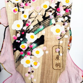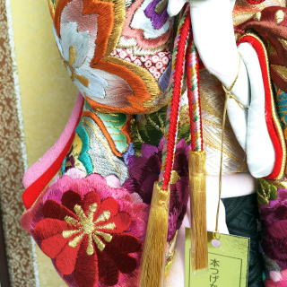 | 春日部の伝統工芸士「匠 一好」の羽子板です。 10色以上の糸を使用した色鮮やかな松・菊・桜の総刺繍生地は、とても美しく豪華な仕上がりです。 刺繍と刺繍の間には金彩で梅や菊が描かれております。 襟とお顔の背景には、桜の刺繍を入れました。刺繍尽くしの羽子板です。 髪飾りには、手彫りのほんつげかんざしと、正絹鹿の子玉、お花の金物細工を使用しました。 細部までこだわって作られております。 透き通った目元が特徴のお顔は、日本画家が1枚ずつ手描きで製作したものです。1枚ずつ表情が微妙に異なりますので、必要な方はお申し付け下さい。画像をお送り致します。 羽子板の裏面には、手描きで梅の花を入れております。 梅の花には、まだ寒い時期に花を咲かせることから、逆境に強い子になりますようにという願いが 込められており、また、生命力の象徴ともされています。 ケースは、前面の支柱のないスッキリしたガラスケースを使用しております。 (前面の左側から開きます。) ※「松」には、常縁である所から、不変により不老長寿の意味があります。 「菊」には、不老不死、延命長寿、無病息災、邪気払いの意味があります。 「桜」には、往々にして葉が出そろう前に花が咲きそろうことから、 「何もないところに花が咲く」という状態に、強い生命力の意味があります。 ※刺繍の豪華な装飾は、様々な色に染められた糸を使用し、 ひと針ひと針想いをを込めて縫われております。 材料が糸であるという性質上、混色がおこなえない為、使用する色の糸を使用します。 日本では古来より「縫い目に呪力が宿る」とされ、子供の装飾などには刺繍を施し「背守り」と言われました。 ※サービスでお付けしております「飾り羽根・飾りまり」の色は随時変更しております。 画像とは別の色の「飾り羽根・飾りまり」をお付けする場合もございます。ご了承頂けましたら幸いです。 ご希望がある方は、お申し付け下さい。できる限りご対応させて頂きます。 ●こちらの商品の特典(サービス品) ・お子様のお名前と御生年月日入り立札 ・飾り羽根 ・飾りまり ・国内送料無料です(ガラスケースの海外への発送はできません) |