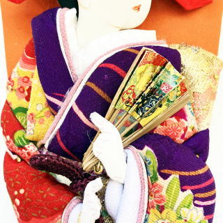 羽子板の形に押絵を収めた昔からある形です。(現在は、羽子板から振袖の押絵を飛び出して大きく作るのが主流となりました。)