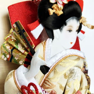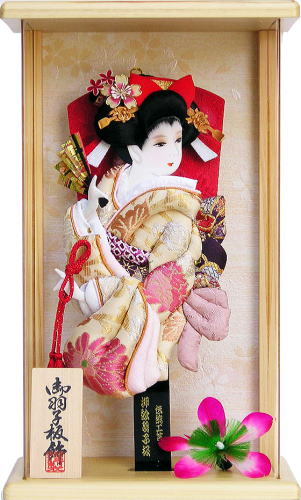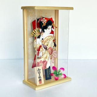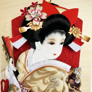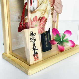 | 埼玉県春日部市の伝統工芸士「江戸勝」の羽子板飾りです。 流れるような動きの押絵が特徴的です。 押絵には、菊と唐草の柄が入った帯地を使用しております。 菊には不老長寿の意味があり、唐草には繁栄の意味があります。縁起の良い柄です。 髪飾りには、ほんつげのかんざしと桜のお飾りを合わせました。 ケース枠には桧を使用しております。薄型なのでちょっとしたスペースに置くこともできますし、壁にかけることもできます。ケースの背景にはさりげなく桜の柄が入っております。 アクリルケースの為、割れにくく軽量です。 ※押絵生地の柄の出方はひとつずつ異なります。 詳細画像が必要な方は、お気軽にお申し付け下さい。別途画像を送らせて頂きます。 ※サービスでお付けしております「飾り羽根」の色は随時変更しております。 画像とは別の色の「飾り羽根」をお付けする場合もございます。ご了承頂けましたら幸いです。 ご希望がある方は、お申し付け下さい。できる限りご対応させて頂きます。 ●こちらの商品の特典(サービス品) ・お子様のお名前と御生年月日入り立札 ・飾り羽根 ・国内送料無料です(ガラスケースの海外への発送はできません) |
