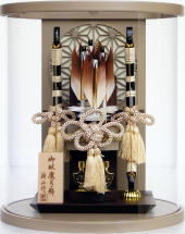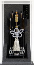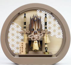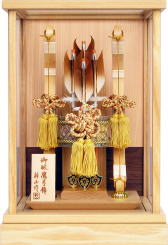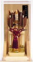 | 弓と矢で的を射てその年の占いをしたのが破魔弓の起源といわれ、魔除け、厄払いのお守りということで、男の子が御生まれになって初めて迎えるお正月には破魔弓が飾られます。 |