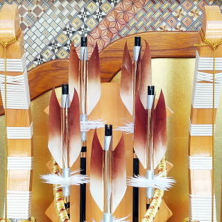 本体もケースも全て国産の天竜桧(ヒノキ)を使用した総桧造りで高級感漂う破魔弓飾りでございます。