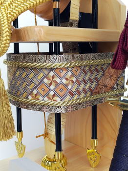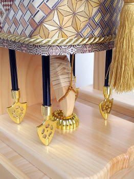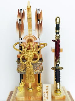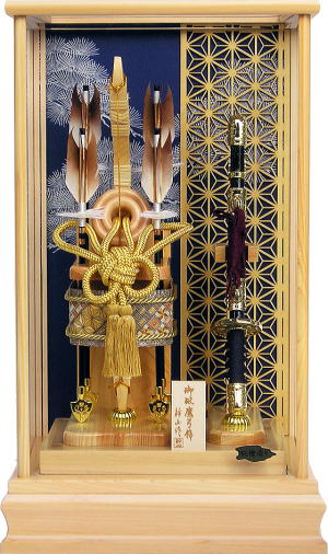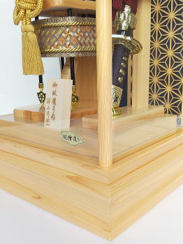 | 本体もケースも全て国産の天竜桧(ヒノキ)を使用した高級感漂う総桧造りの破魔弓飾りでございます。 落ち着きのある紺色の布地を使用したケース背景には、末代まで子孫繁栄・末長く家系が続きますようにと願いが込められた縁起の良い「松葉」が金彩で絵描かれており豪華です。また、縁起の良い「麻の葉」柄を模った組子細工をあしらい高級感漂うケースに仕上げました。 ぼかし染めした温かみのある色合いの天然羽根を使用した4本の矢羽根には、「青龍」・「白虎」・「玄武」・「朱雀」の四神を示し、東西南北の魔を除ける方位除けの意味があります。 特殊な技法で木を寄せて伝統文様を作り出す日本伝統工芸の箱根「寄木細工」をあしらった豪華な矢筒と存在感のある一本太刀が特徴的です。 小サイズの破魔弓飾りですが、細部まで素材にこだわり作られた逸品で、日本の銘木「桧」の美しさをご堪能頂けます。 ※寄木細工の模様の出かたは、寄木の使用する部分により異なる場合がございますので予めご了承下さいませ。 ※寄木細工とは、日本の伝統文様を木で寄せて作る特殊な技法です 数年乾燥させたタモ・サクラ・ミズキ等の雑木・倒木から良質な材木の選定をし、色の異なる様々な加工木片を寄せ合わせて幾何学的な模様のある種板を作ります。 その表面を薄く削った物を木製品に貼り、文様・絵柄を楽しむのが「寄木細工」です。 その完成までには、熟練した技術に加え、大変多く手間がかかる為、希少価値のある伝統的な工芸品です。 ※天竜桧とは、静岡県の天竜にある桧を指します。 日本三大人工美林のひとつで、山職人が何十年もかけて手入れし育てた天竜の木々は、天竜川水系沿いの恵まれた自然環境も有り、大変良質です。抗菌・消臭作用が強く、芳香によるリラックス効果などがあります。 ※「麻の葉」は、4ヶ月で4mになるほど成長が早く真っ直ぐにぐんぐん成長していく為、子供の健やかな成長の願いが込められた吉祥文様です。 また模様そのものに邪気を払う力があるとされ魔除けの意味もあります。 赤ちゃんの健やかな成長と魔除けの意味を込め産着や子供の着物に麻の葉文様は好んで用いられました。 ●こちらの商品の特典(サービス品) ・お子様のお名前を書き入れた立札 ・国内送料無料です。 (ガラスケースの海外への発送はできません) |