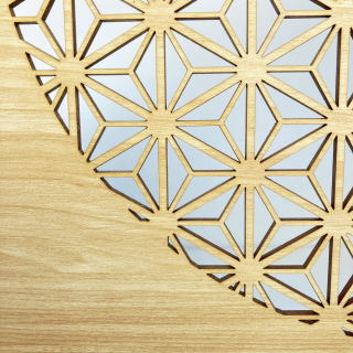 落ち着きのある色調から人気のあるウォールナット色に塗装された茶木目調の円型木枠にアクリル板をはめ込み仕上げたアクリルケースです。子供の健やかな成長の願いが込められた縁起の良い吉祥文様「麻の葉」をレーザー彫りした背景がお洒落なデザインになっております。