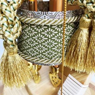 ※「菱菊」とは、菊の花の形は太陽に例えられ「日精」と言われ、悪霊を払う意味がありました。また菊を浸した「菊水」を飲むと長寿が保たれるという故事から薬草として不老不死の象徴となりました。そして菱形には厄除け・魔除けの意味があると言われており、大変縁起の良い伝統的な吉祥文様です。