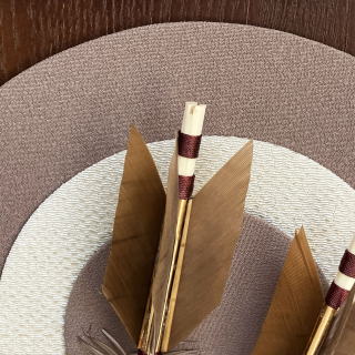 綺麗な茶色染めを施した4本の天然羽根には、「青龍」・「白虎」・「玄武」・「朱雀」の四神を示し、東西南北の魔を除ける方位除けの意味があります。